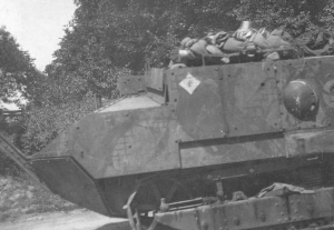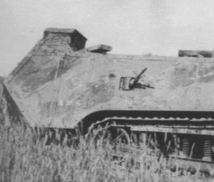 Chars Renault FT : Le numéro matricule est peint sur les poutres porteuses du train de roulement.