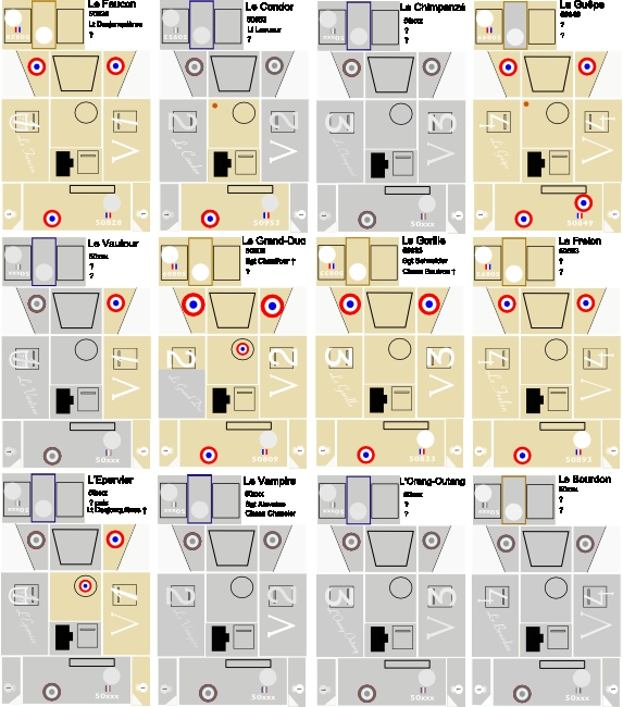 4ème section : Selon le même organigramme, c’est le Bourdon qui serait l’engin du chef de la 4ème Section. Nous n’en avons hélas qu'un seul cliché, et la Guêpe ayant porté une antenne radio, nous avons pris la liberté de lui attribuer ce rôle.