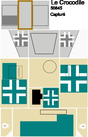 Le Crocodile, après sa capture a été partiellement repeint aux couleurs allemandes. La couleur utilisée pour masquer les marques françaises n'est pas confirmée, et pourrait tout aussi bien être grise, brune ou de toute autre nuance foncée disponible.