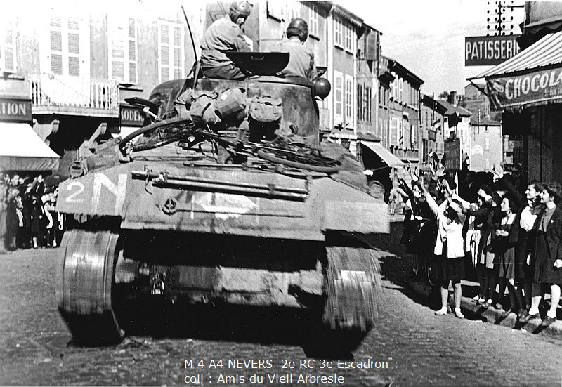 Affecté le 22 février 1945 en remplacement du NEVERS détruit. Le 12 avril, le char est réaffecté au 3e peloton et rebaptisé, à la grande déception de l'équipage qui retrouve un M 4 A4 à canon de 75. |