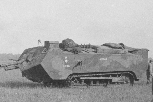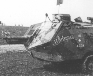 Chars Renault FT : Le numéro matricule est peint sur les poutres porteuses du train de roulement.