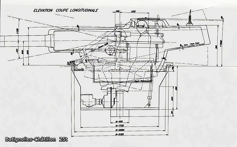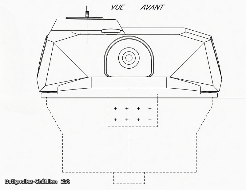 Une variante surbaissée a également été étudiée. Le char n’a, semble-t-il, pas dépassé le stage de la planche à dessin.